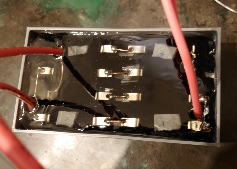 Hier sehen wir das ganze vergossen und montiert, bereit zum testen: